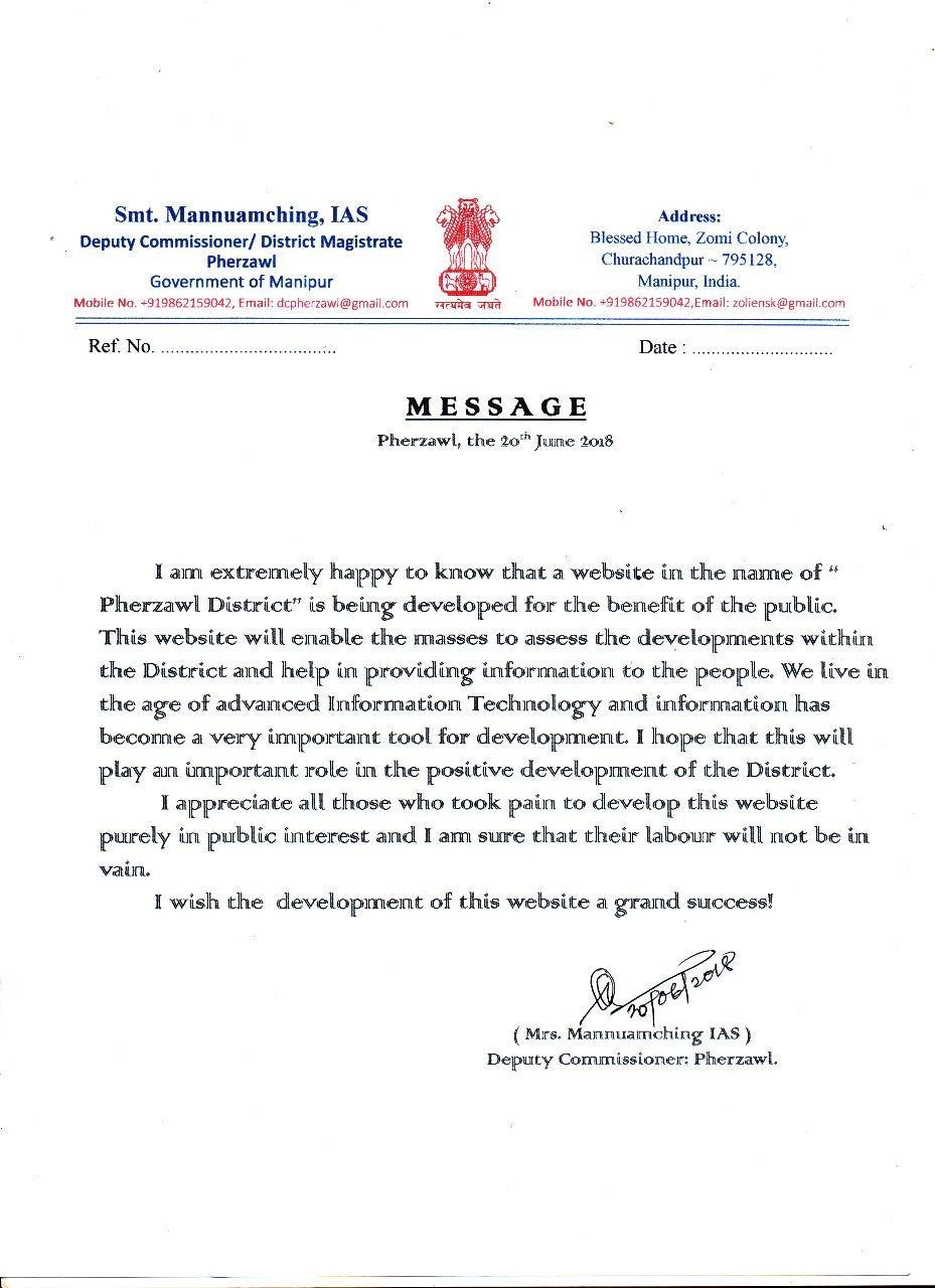 Deputy Commissioner of Pherzawl District Pi Mannuamching has welcomed the creation a people’s based website Pherzawldistrict.com. Here’s her message on the website and on her hope for the district.