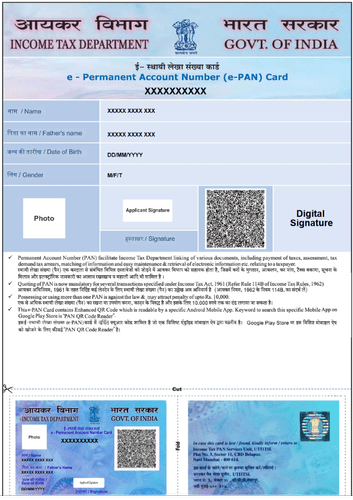 The Government of India has introduced e-PAN facility is for the allotment of Instant PAN (on a near-real-time basis) for those applicants who possess a valid Aadhaar number.