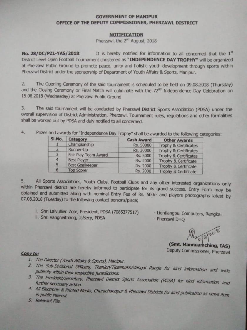 Pherzawl District Independence Day Trophy from August 9